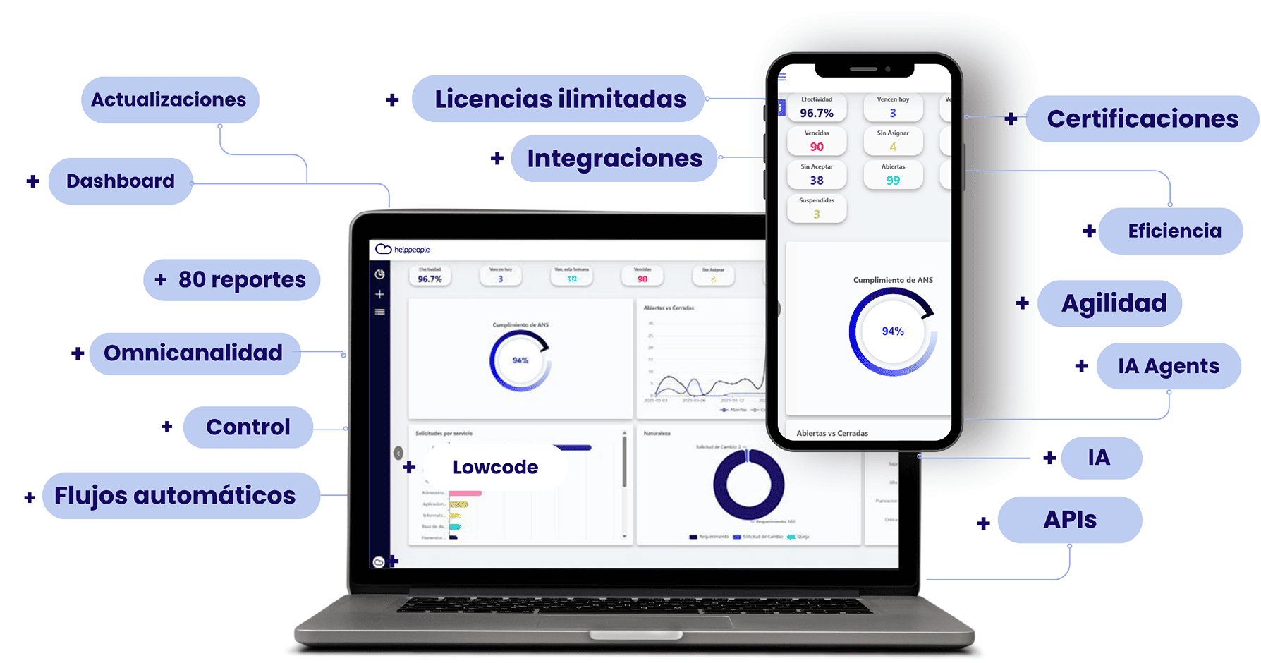 Nuestros productos ITSM integran la gestión inteligente de incidentes, solicitudes, problemas y cambios, potenciando la agilidad y eficiencia operativa desde la omnicanalidad, el control de SLAs y la automatización de flujos